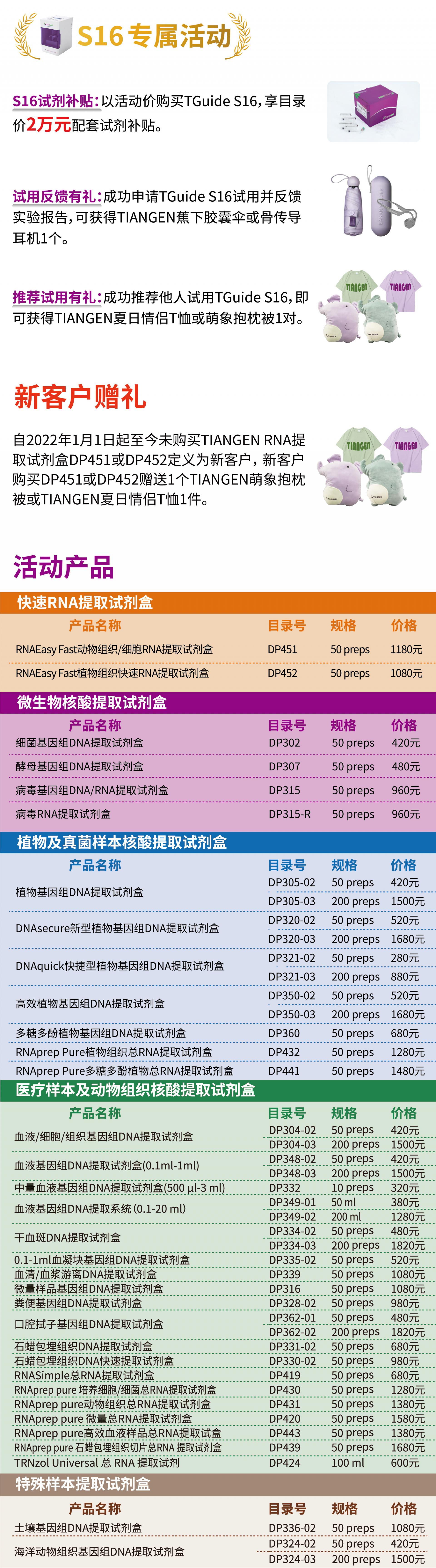 即日起至7月31日,TIANGEN特别推出核酸提取主题月活动:一键智能提核酸,小巧便捷更简单。我们将为科研人员的核酸提取实验提供快速稳定的试剂和自动化仪器,同时我们的主题月活动准备了众多优惠和好礼,欢迎大家积极参与,活动详情咨询当地销售人员。