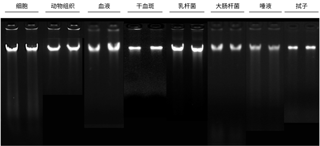 提取多种样本的电泳图展示结果