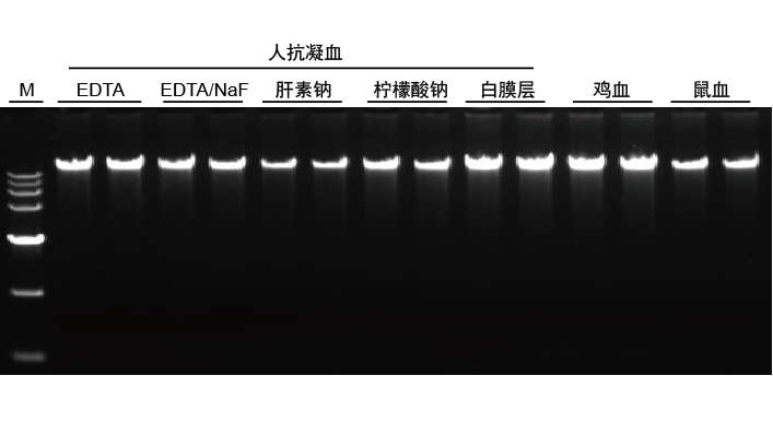 样本适用广泛:可从抗凝血(EDTA ,肝素等)、白膜层和血凝块等样品中直接提取基因组 DNA